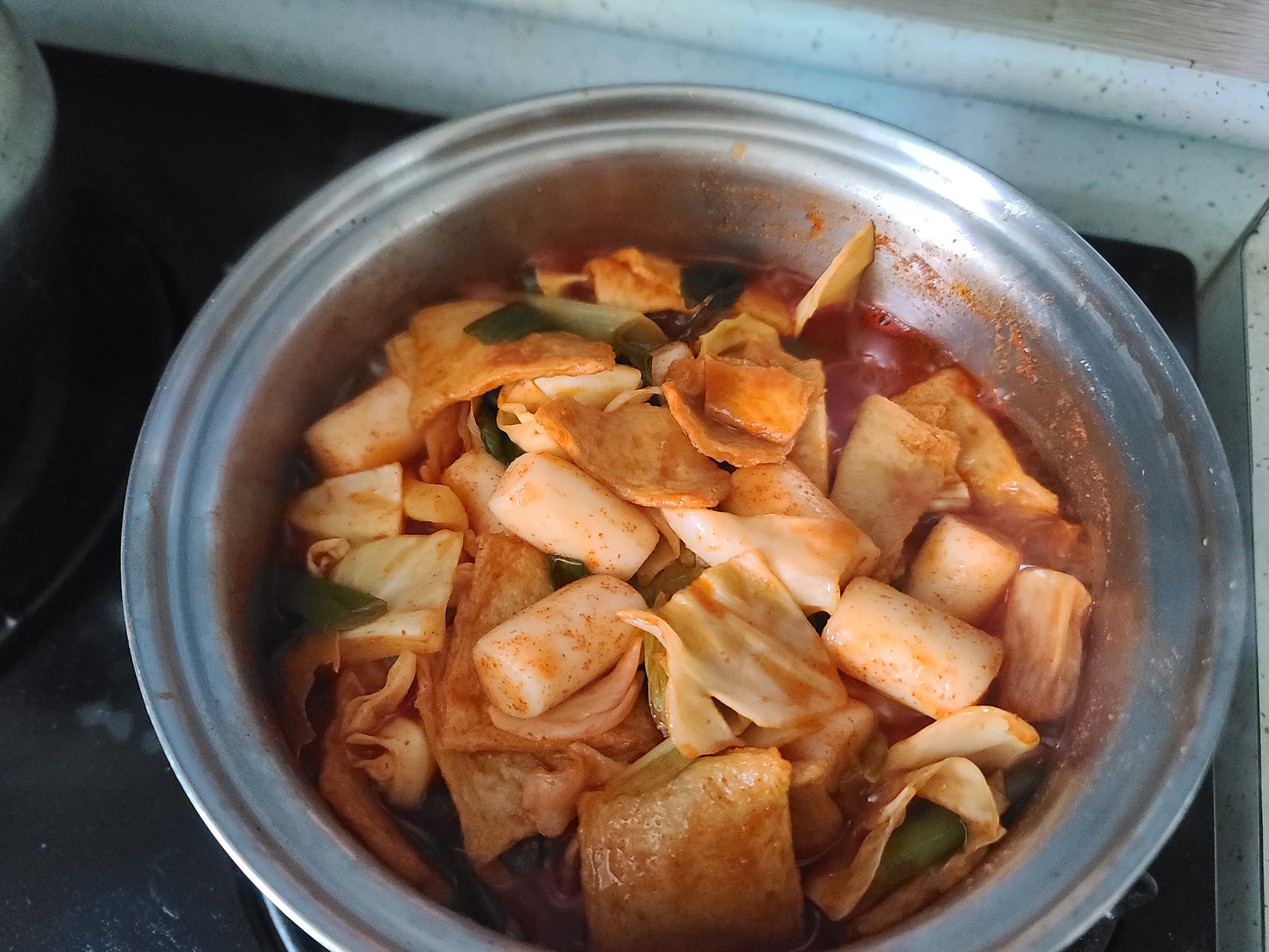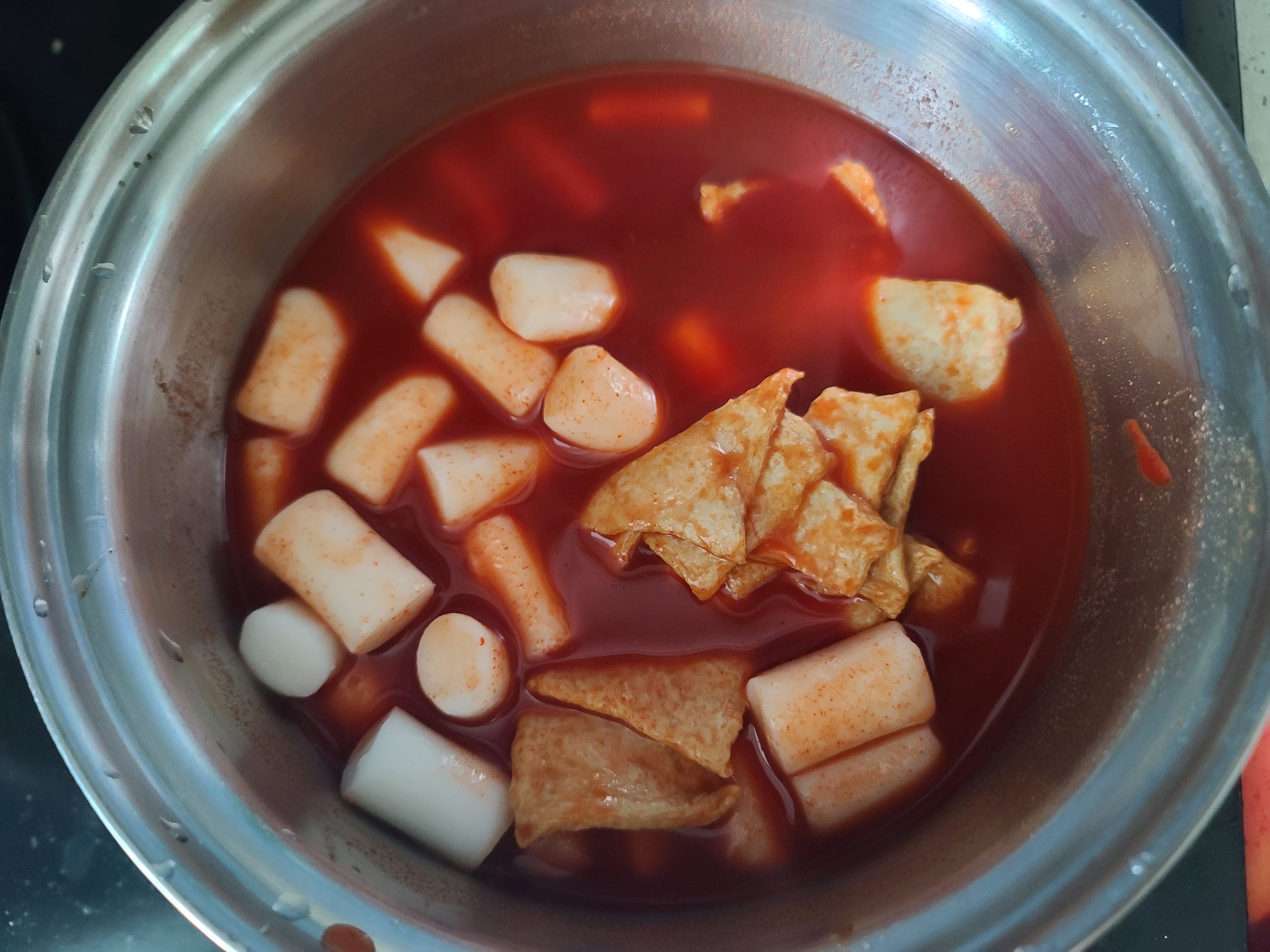 야채에서 물이 많이 나와서 국물떡볶이가 됐어요