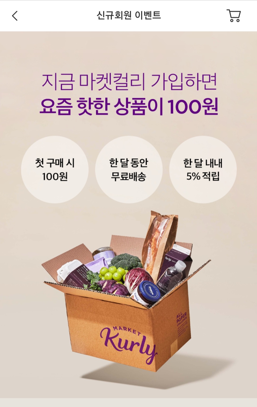 마켓컬리에서 신규가입 이벤트로 가입했어요!