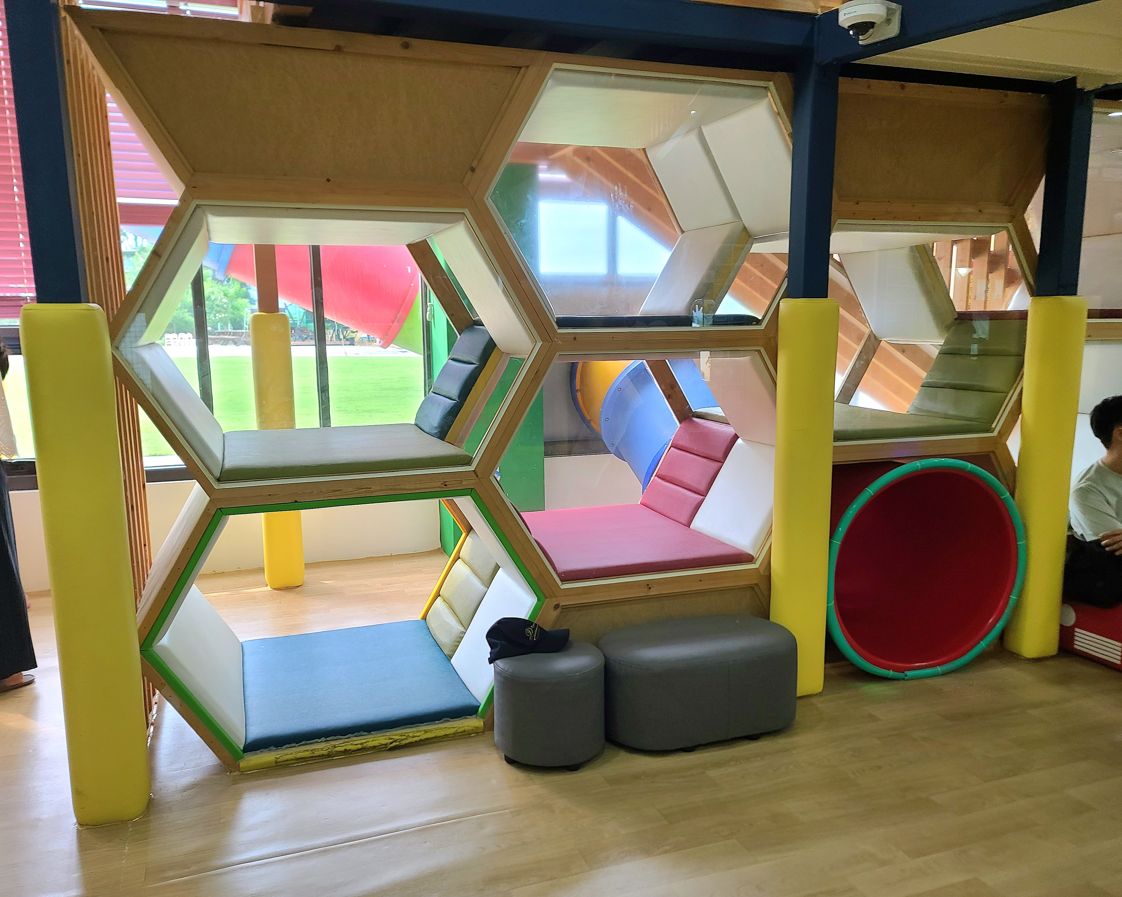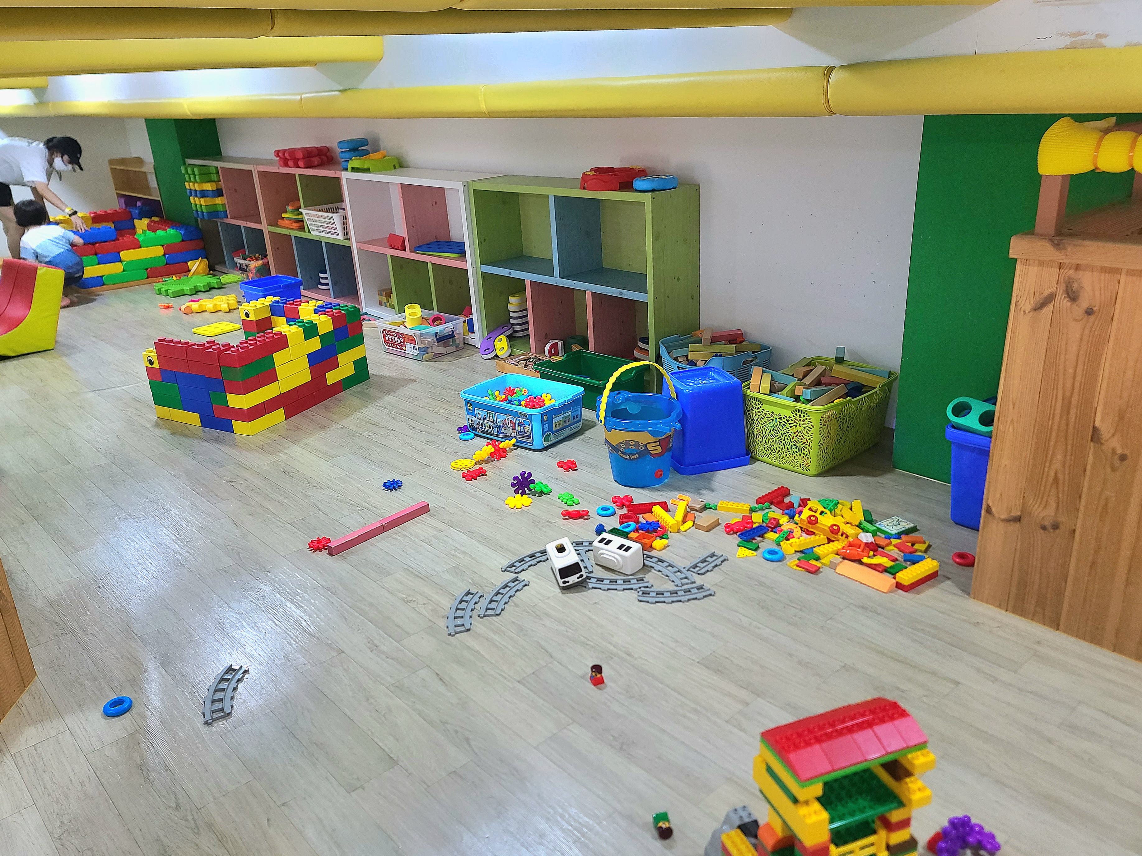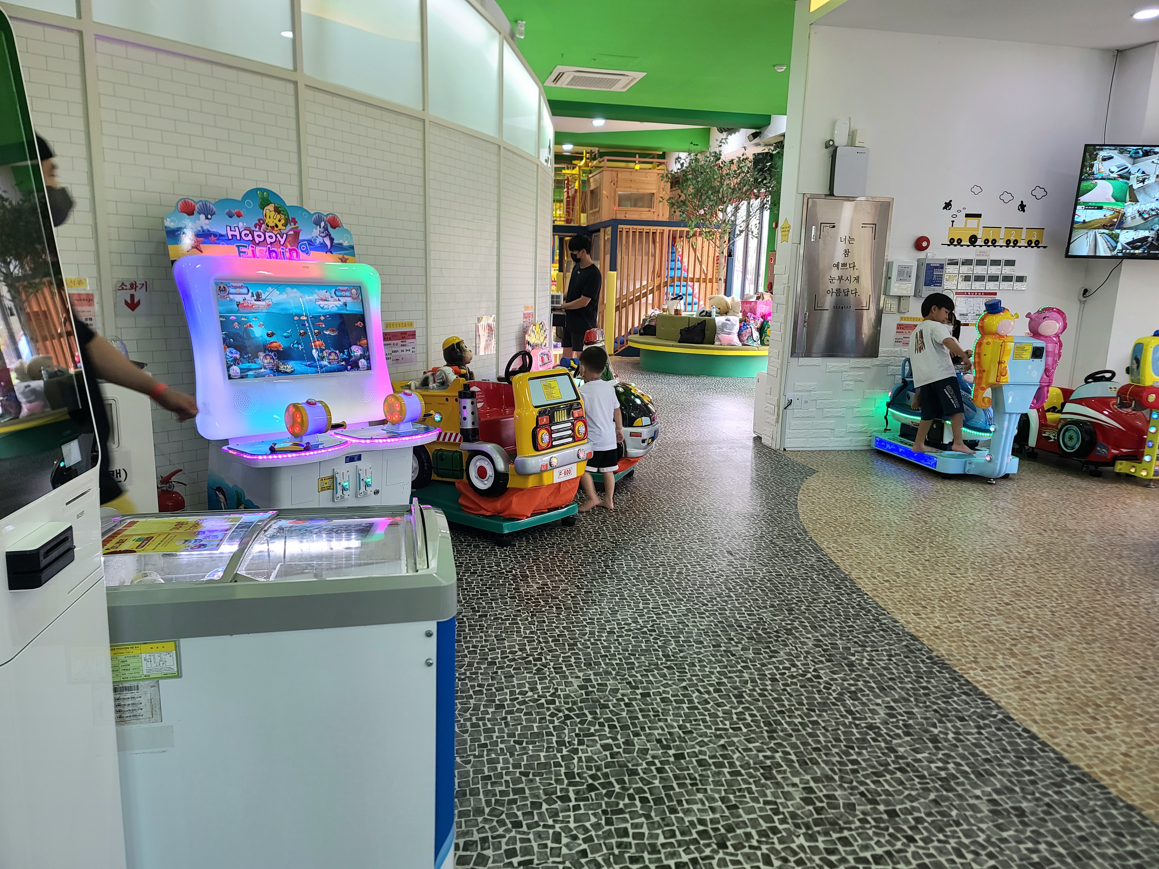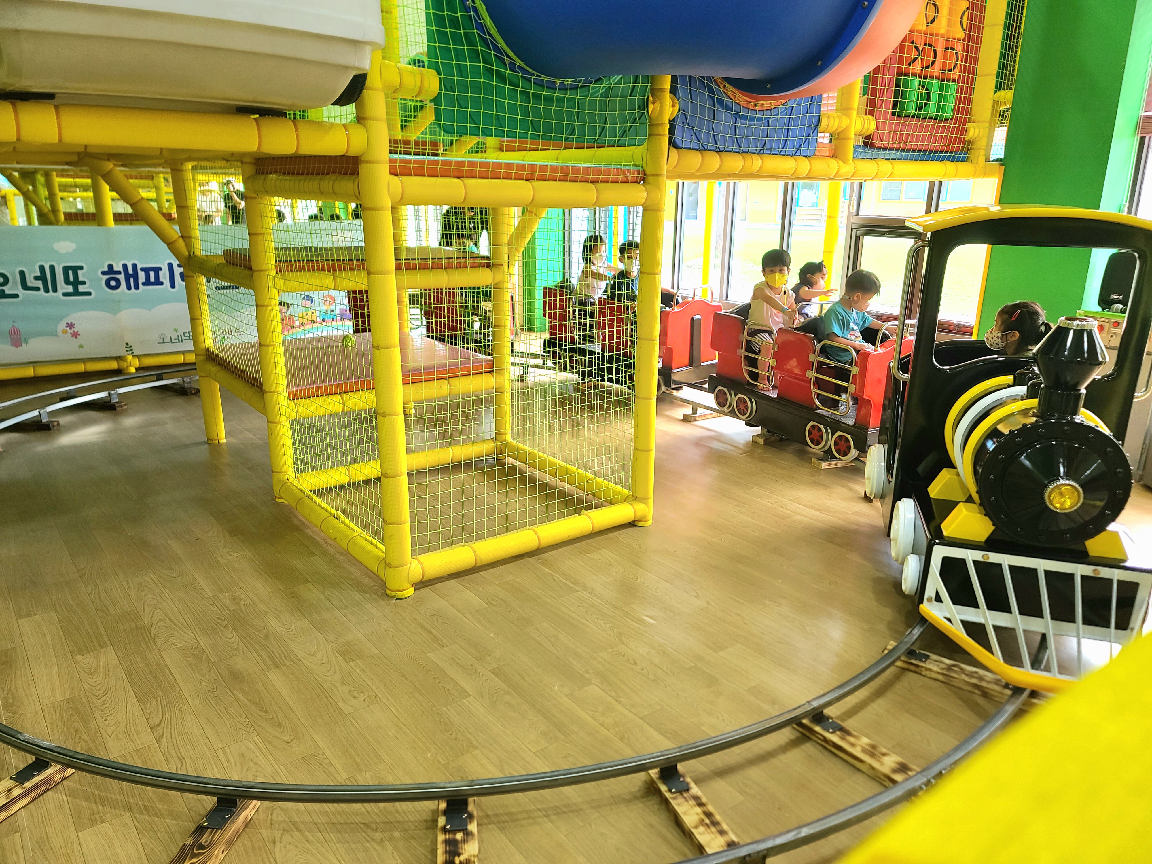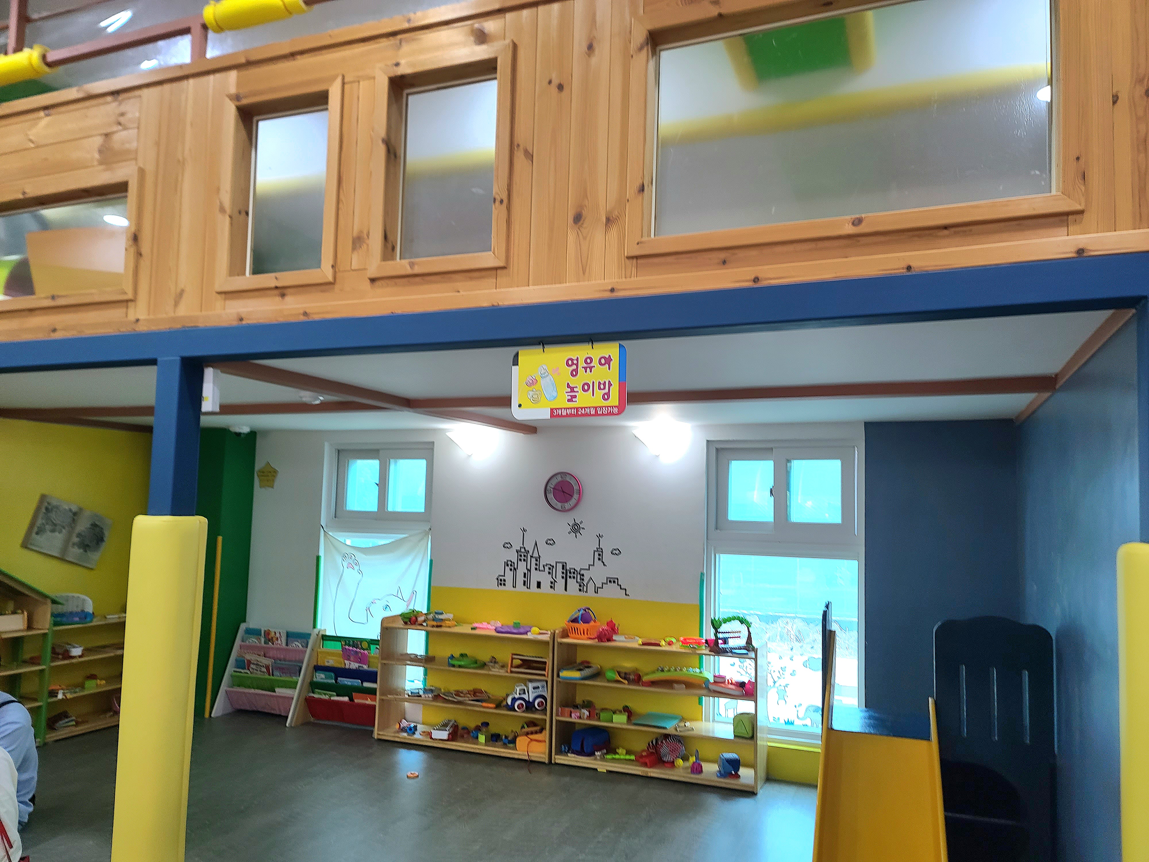 영유아놀이방도 있고 큰아이들 뛰어노는곳도있고 미끄럼틀 짚라인도있어서 다른 키즈카페 부럽지않게 잘돼있어요 블럭 장난감 피규어 책들도 있어요!