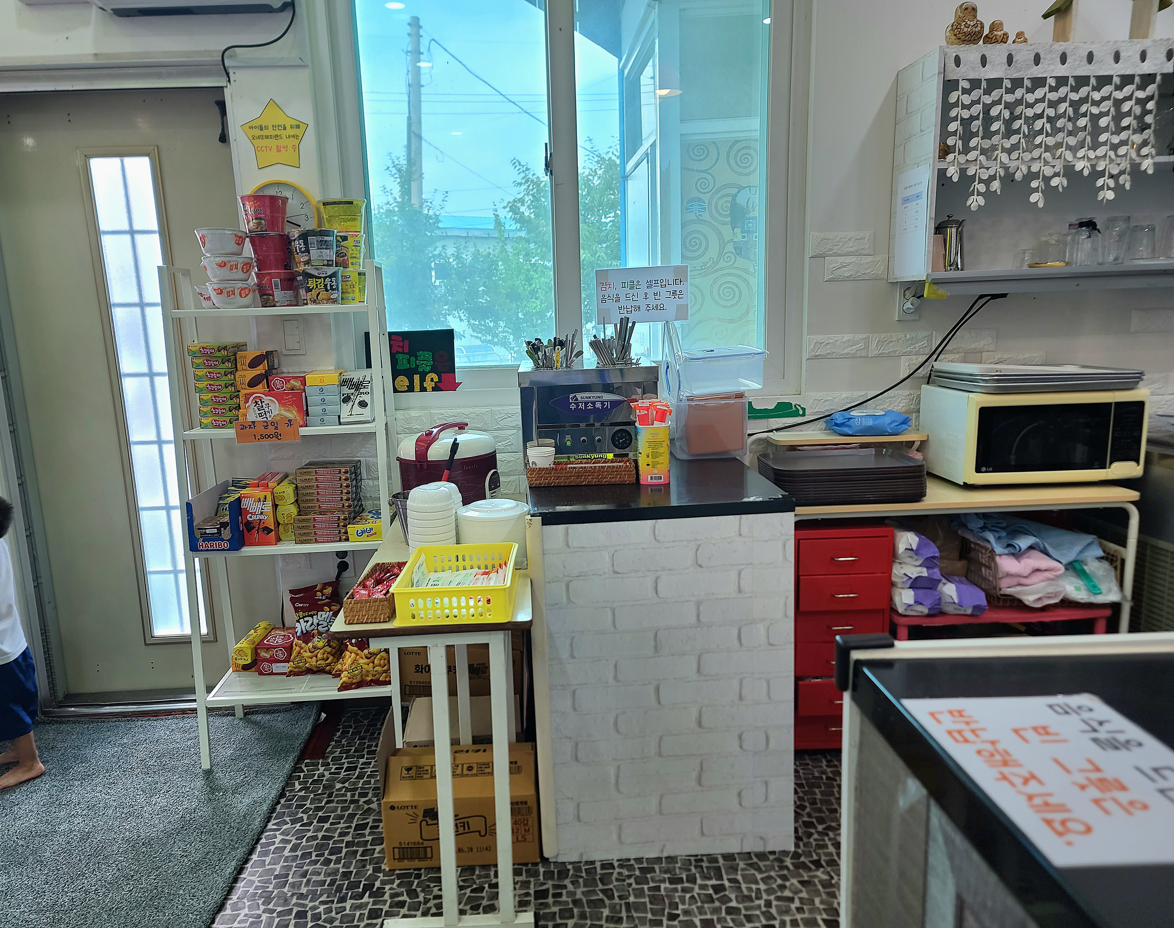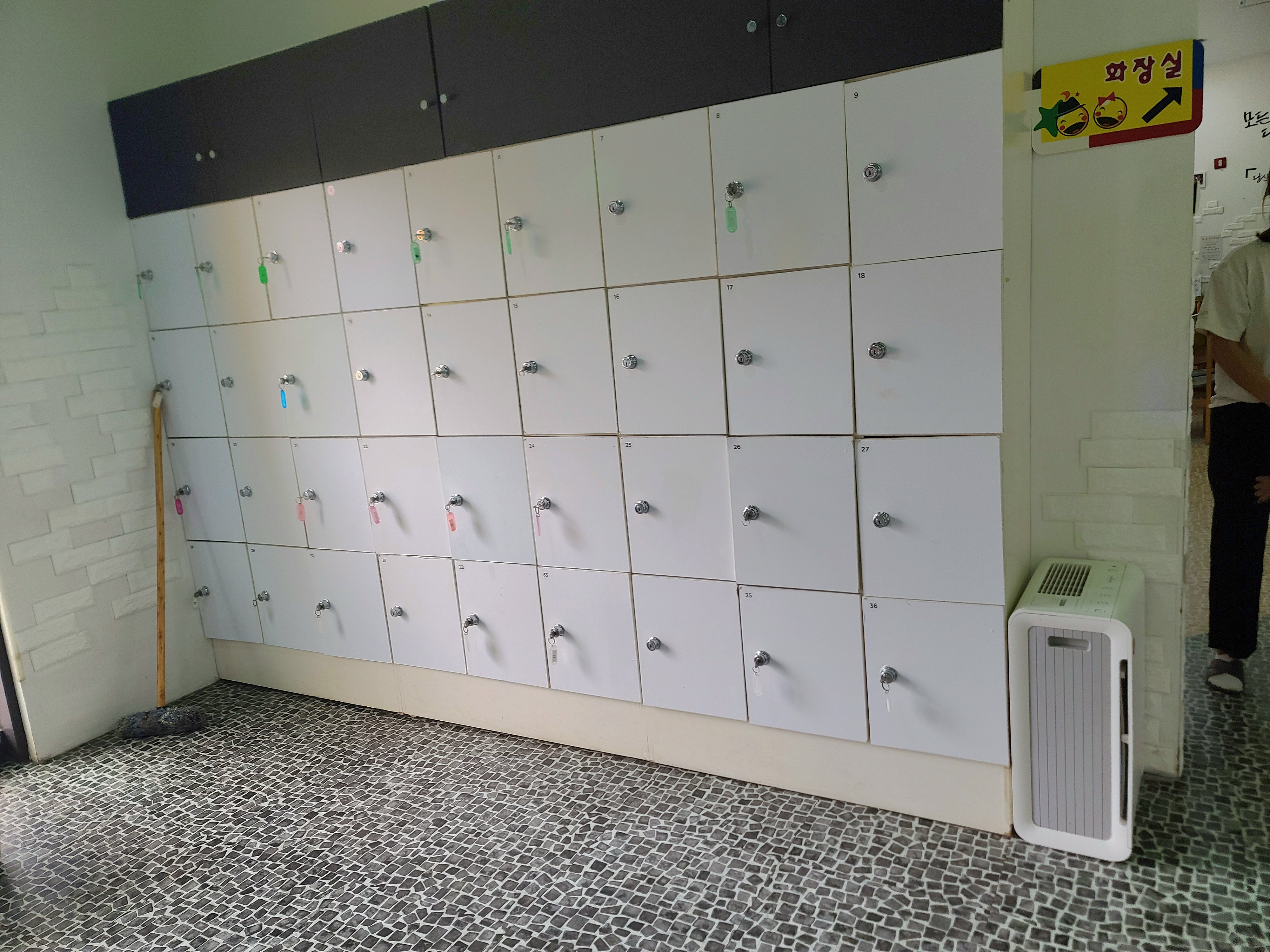 샤워실은 건너편건물에 있어요 남자는 2층 여자는 계단뒤로 1층에 있어요