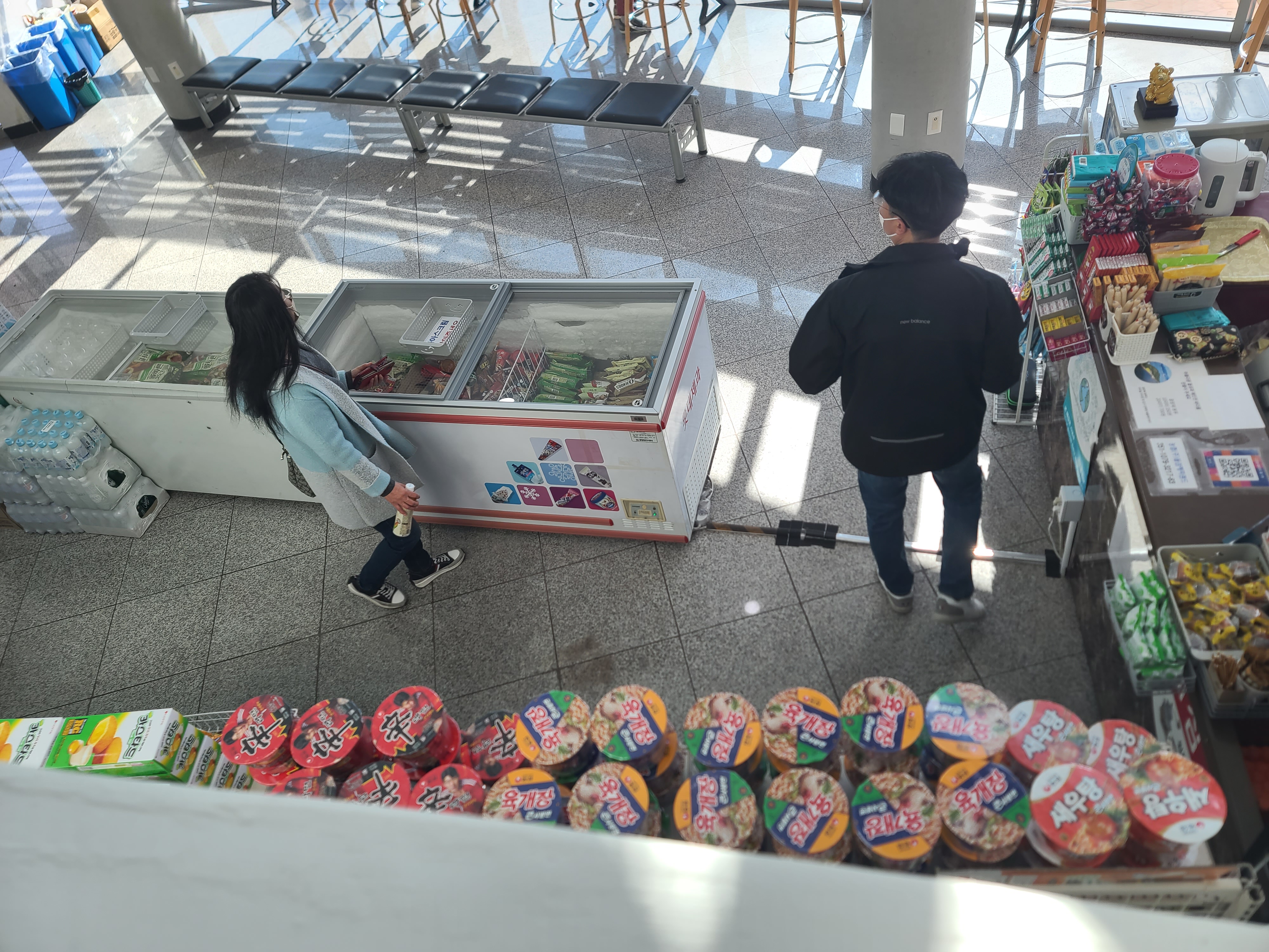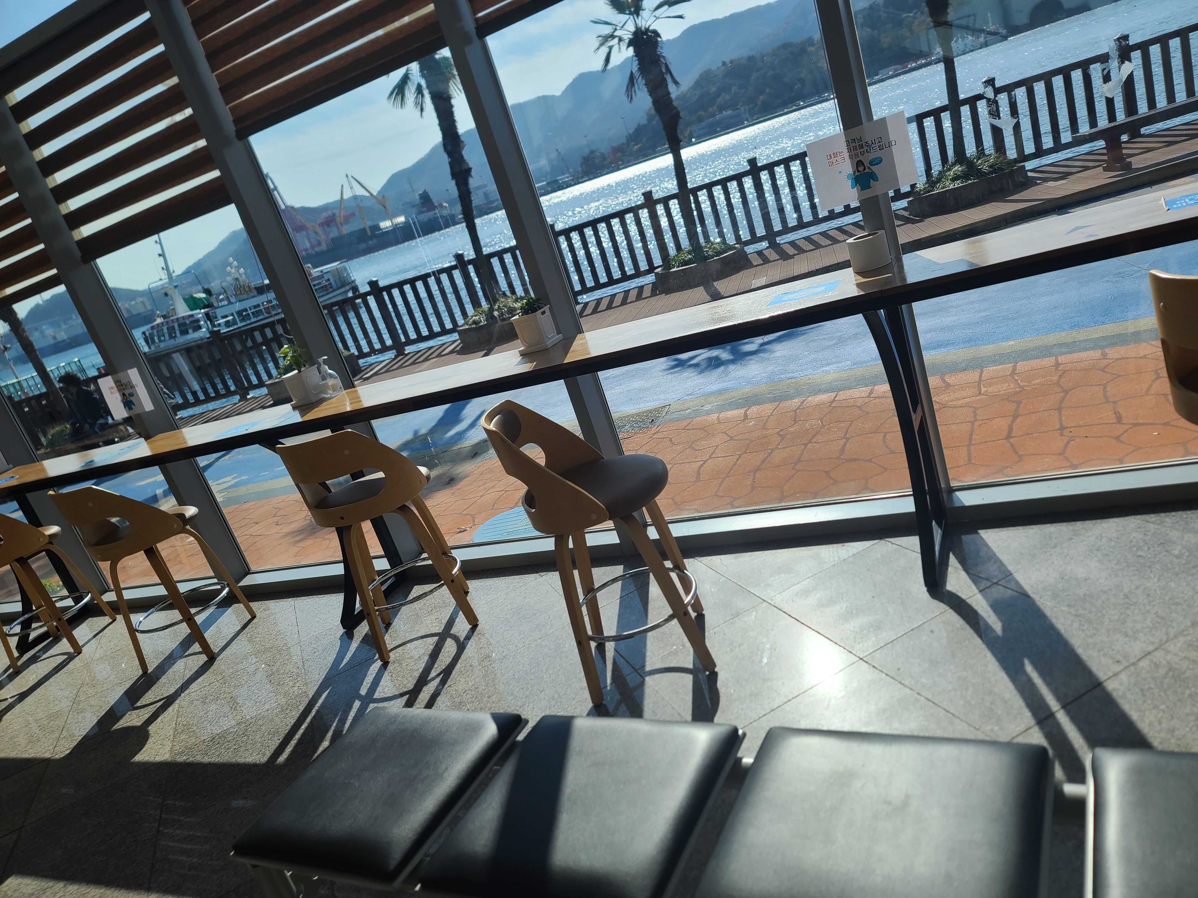 승선장 앞에 돝섬종합관광안내센터안에는 매점이랑 먹을수있는 공간들 있어요 바다보면서 컵라면 먹는것도 좋을거같아요