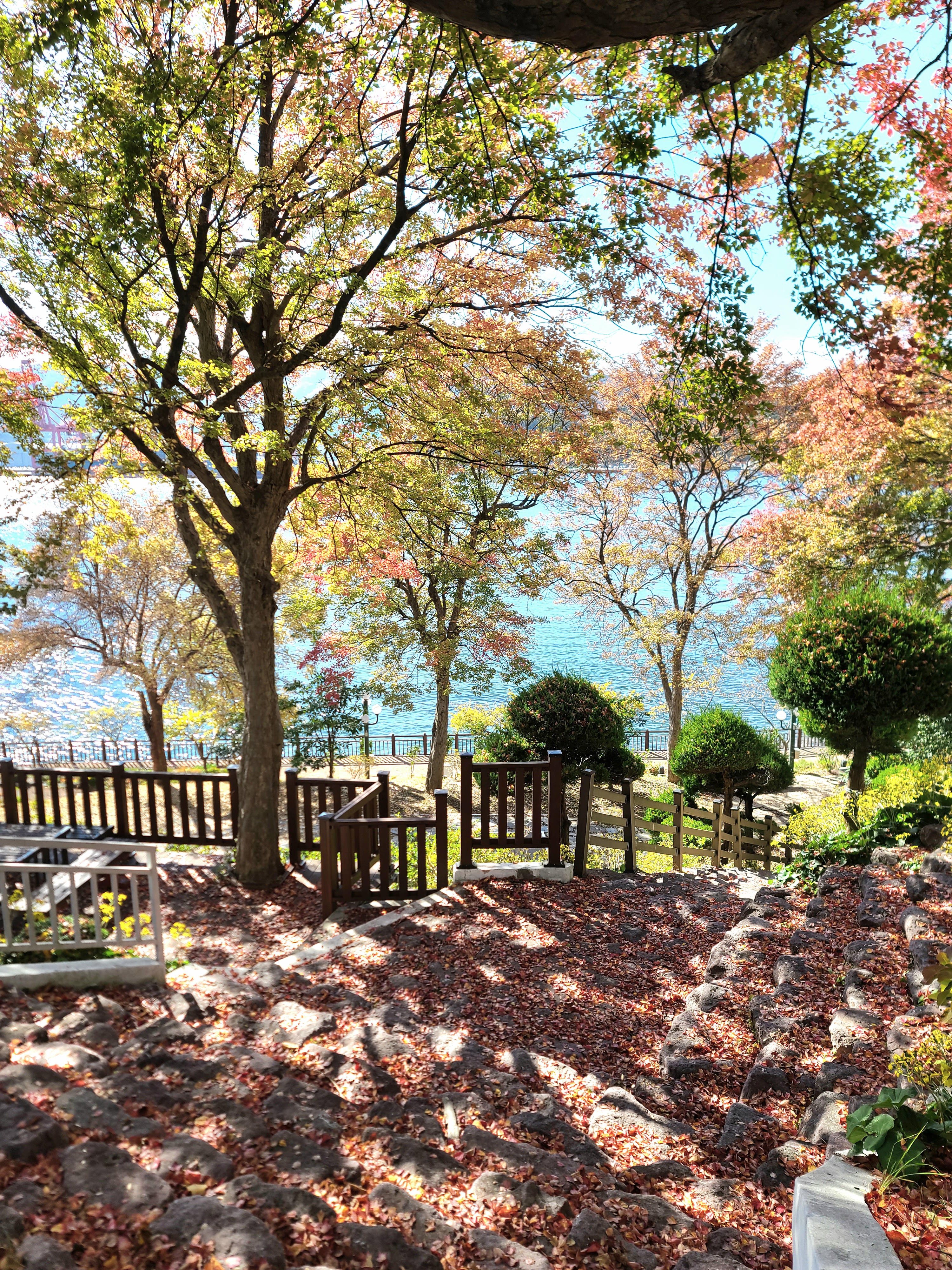 바다도 보이고 단풍든 나무들이랑 바닥에 깔린 낙엽들도 너무 조화로웠어요