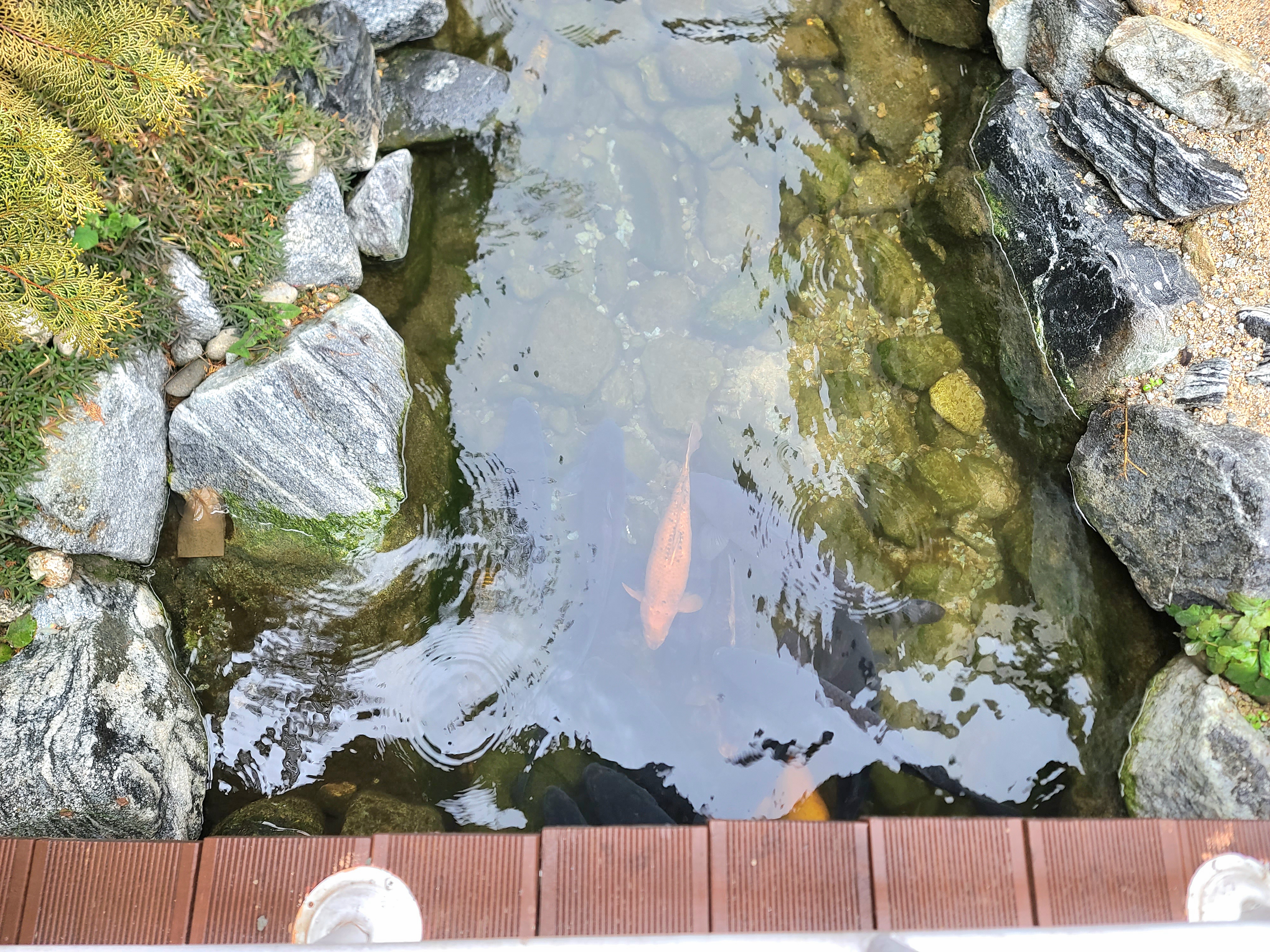 연못에 잉어인거같은데 진짜 성인 팔뚝보다 더 크더라고요 잘안보이는데 검은 잉어들이 가득 ~