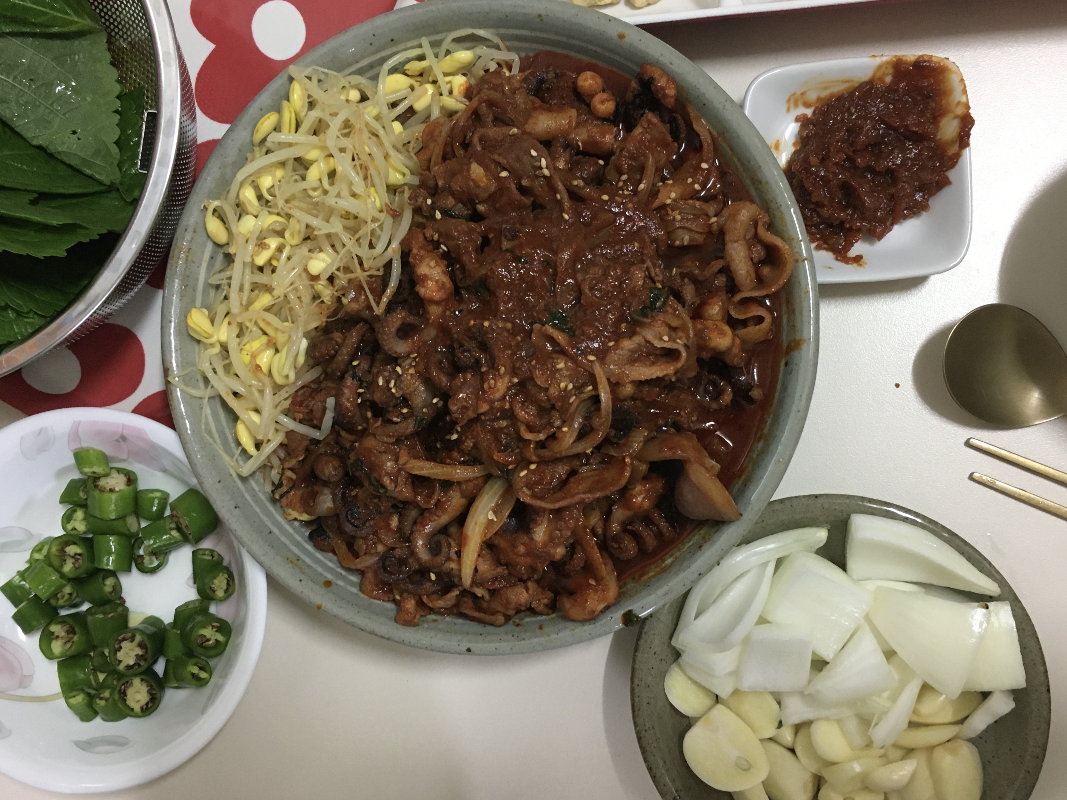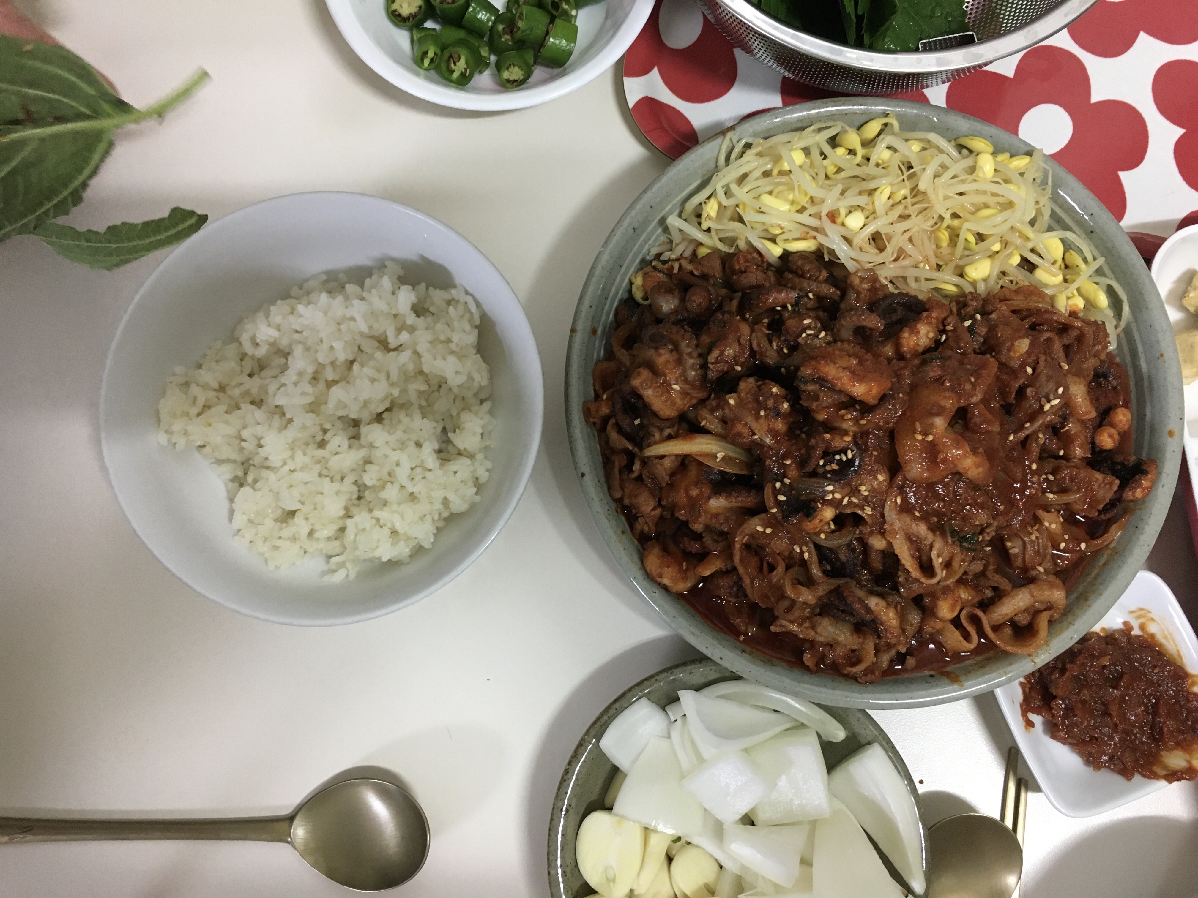 하남쭈꾸미에 대패삼겹살같이볶고 콩나물곁들여서 먹을거에요! 최근에 하남쭈꾸미를 먹었은데 너무 부드럽고 맛있어서 또 구매했어요