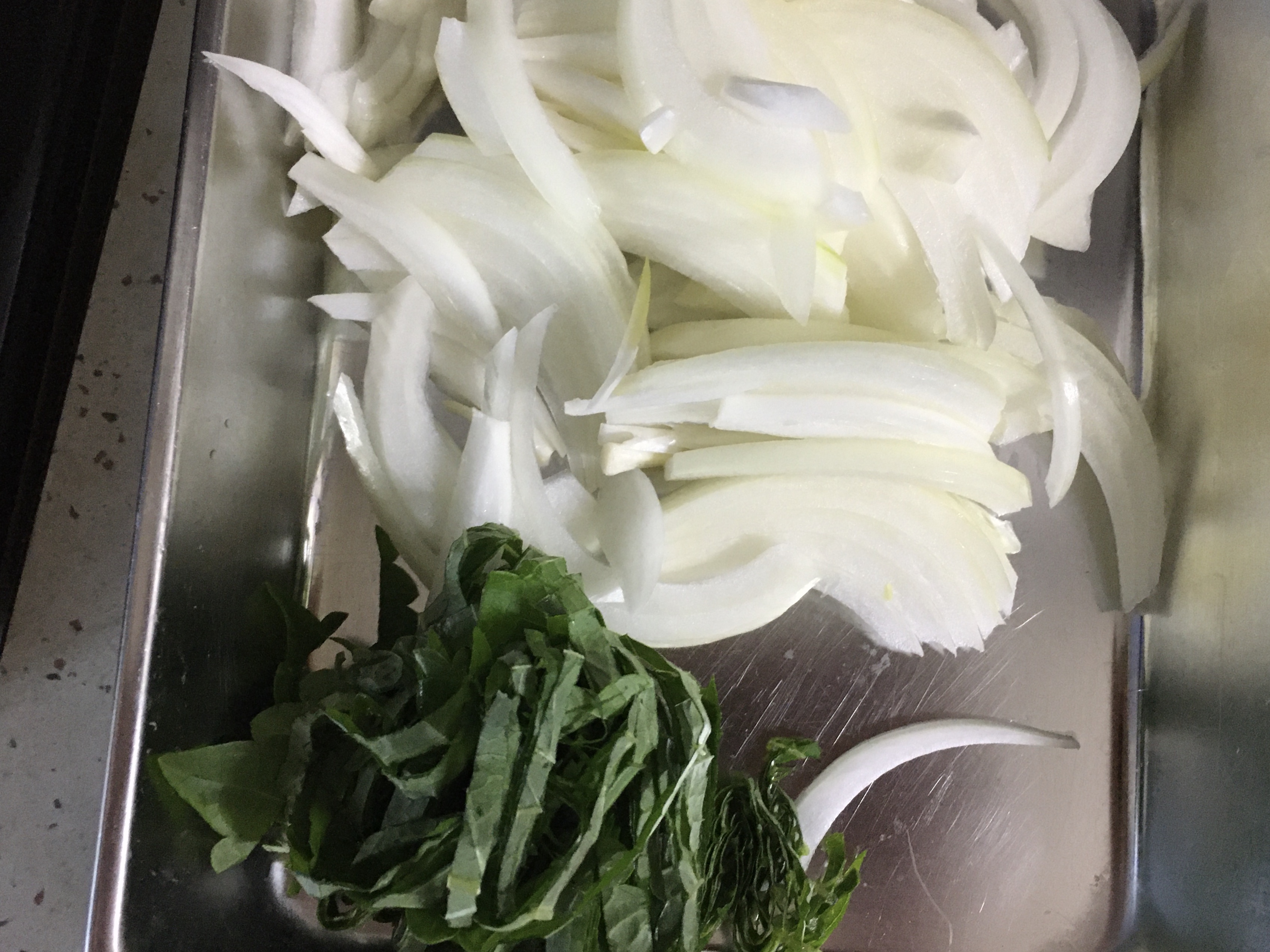 야채는 양파 깻잎잘게 썰었어요 볶을때 같이 넣어줄거에요